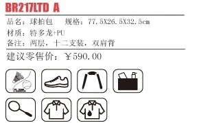 The BR-217 LTD carries up to 6 rackets in 1 compartment.