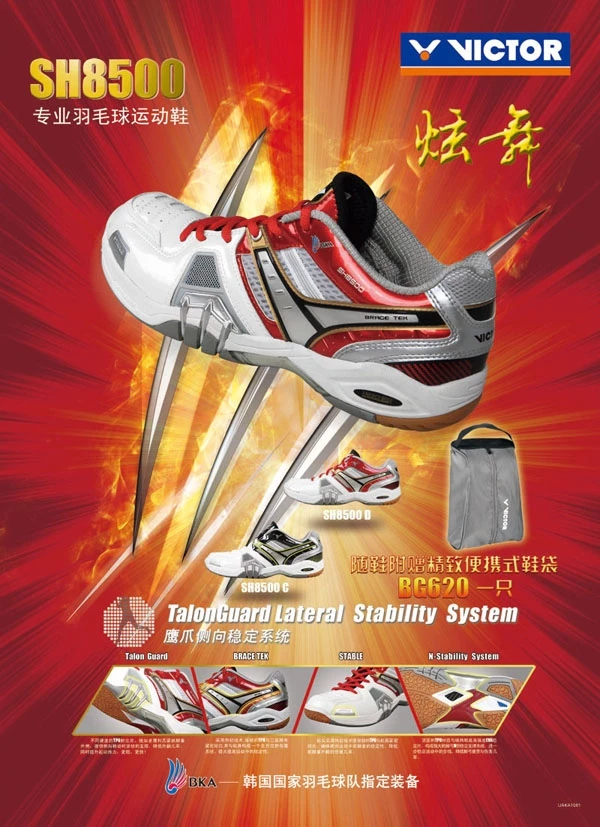 Since the SH8500, VICTOR’s specialized badminton shoe, came out it has received the affirmation of many consumers and top players. In particular, star ROK men’s doubles Lee Yong Dae/ Ko Sung Hyun are very impressed by the TalonGuard lateral stabilization technology featured in the shoe.