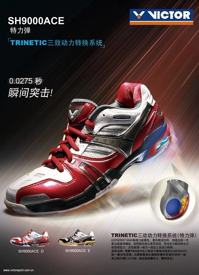 Used by Korea National Team players, the Victor SH-9000 Ace shoe took the badminton world by storm. The first badminton shoe to incorporate Trinetic to the design, the SH-9000 Ace is lighter and faster than other shoes.