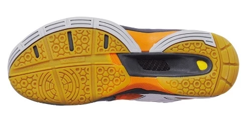 Players also care a lot about the stability and anti-slip functions of their badminton shoes. The SH-A850 has these functions. In terms of lateral stability (Fig.3), two diamond shaped extruded plates that are soft inside and hard outside form the lateral support system (LS-S); the diamond shaped extruded plates have been lengthened to provide more lateral support area and increase stability of lateral movement. In addition, a 3D carbon fiber sheet is used on the foot arch, increasing stability and support. In terms of slip-resistance, the SH-A850’s radial sole pattern has superb slip resistance for both lateral and vertical steps, providing the anti-slip capability required when suddenly stopping or thrusting.